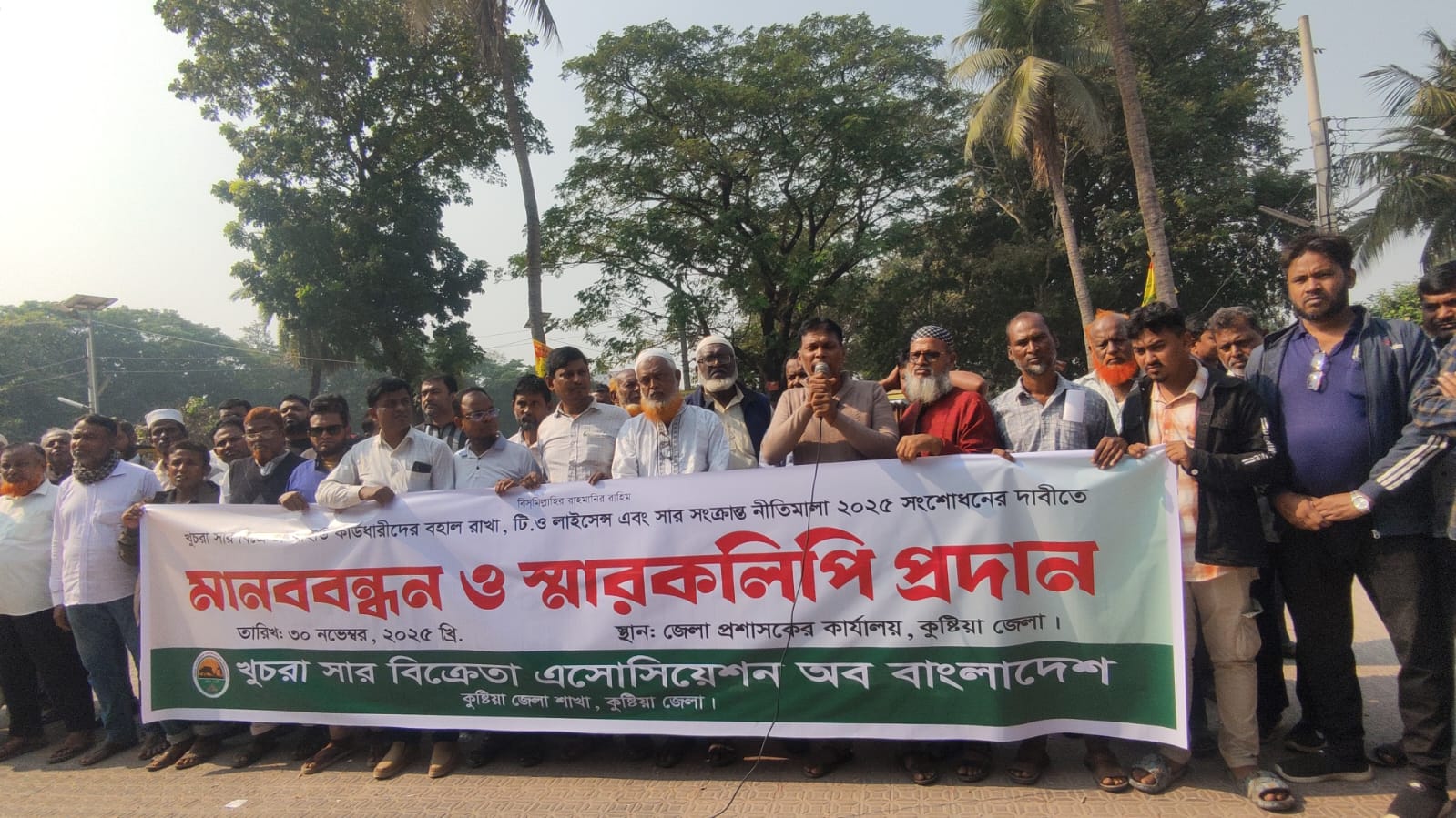 কুষ্টিয়ায় খুচরা সার বিক্রেতা–সাব-ডিলারদের মানববন্ধন ও জেলা প্রশাসকের কাছে স্মারকলিপি প্রদান।