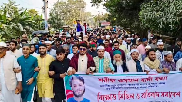শহীদ শরীফ ওসমান হাদী রাহ.-এর হত্যার প্রতিবাদে বিশ্বম্ভরপুরে বিক্ষোভ মিছিল ও সমাবেশ খুনিদের দেশে এনে গ্রেফতার ও ফাঁসির দাবি, কৃষাণ চত্বরের নামকরণ চাইলেন বক্তারা মোঃ শুকুর আলী, স্টাফ রিপোর্টার